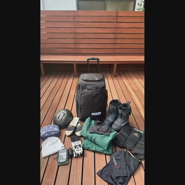 ヘルメット、ブーツ、ボードまで取付ができる高機能ウィールバッグ